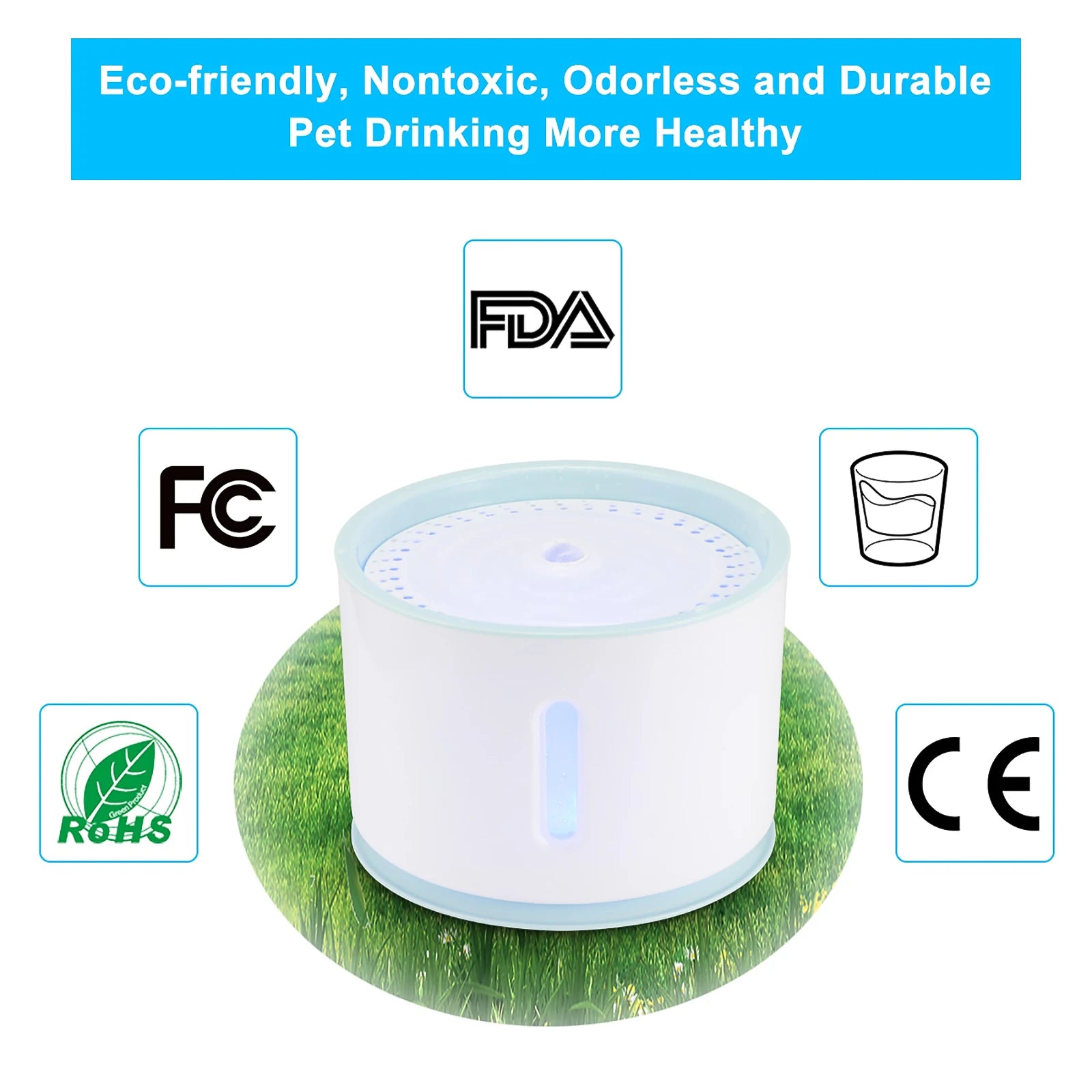 LED Cat Water Fountain NZ – Quiet 2.4L Drinking Bowl for Cats & Dogs