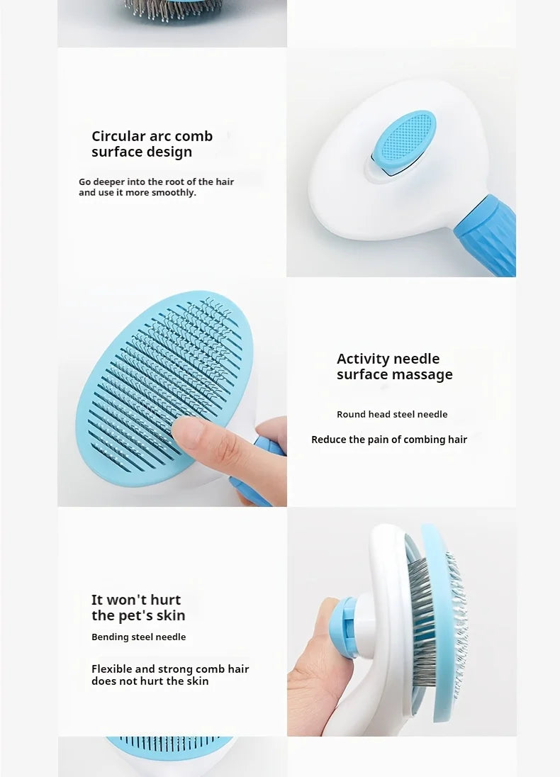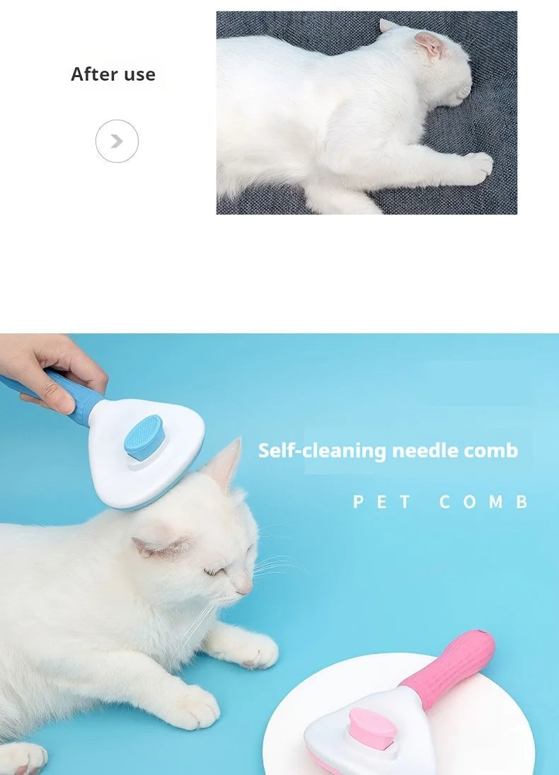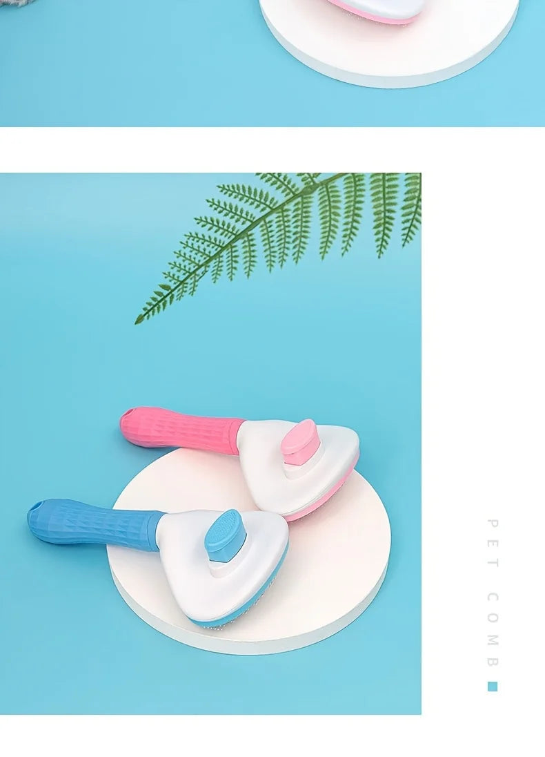 One-Click Pet Hair Removal Brush – Easy Grooming Tool for Dogs & Cats | Gentle, Self-Cleaning De-shedding Comb