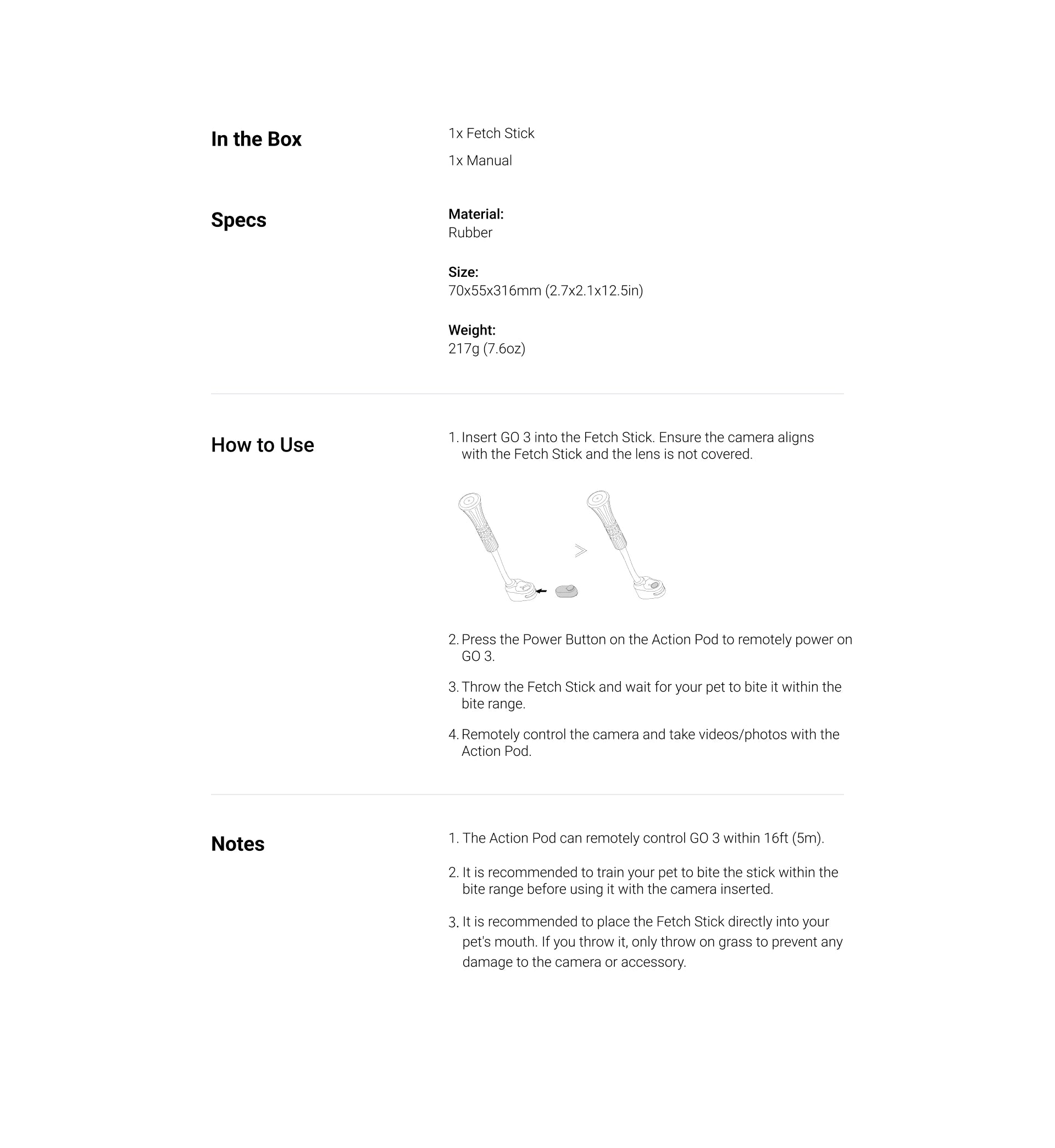 Fetch Stick for Dogs – Compatible with Insta360 GO 3 & GO 3S | Original Pet Camera Accessory