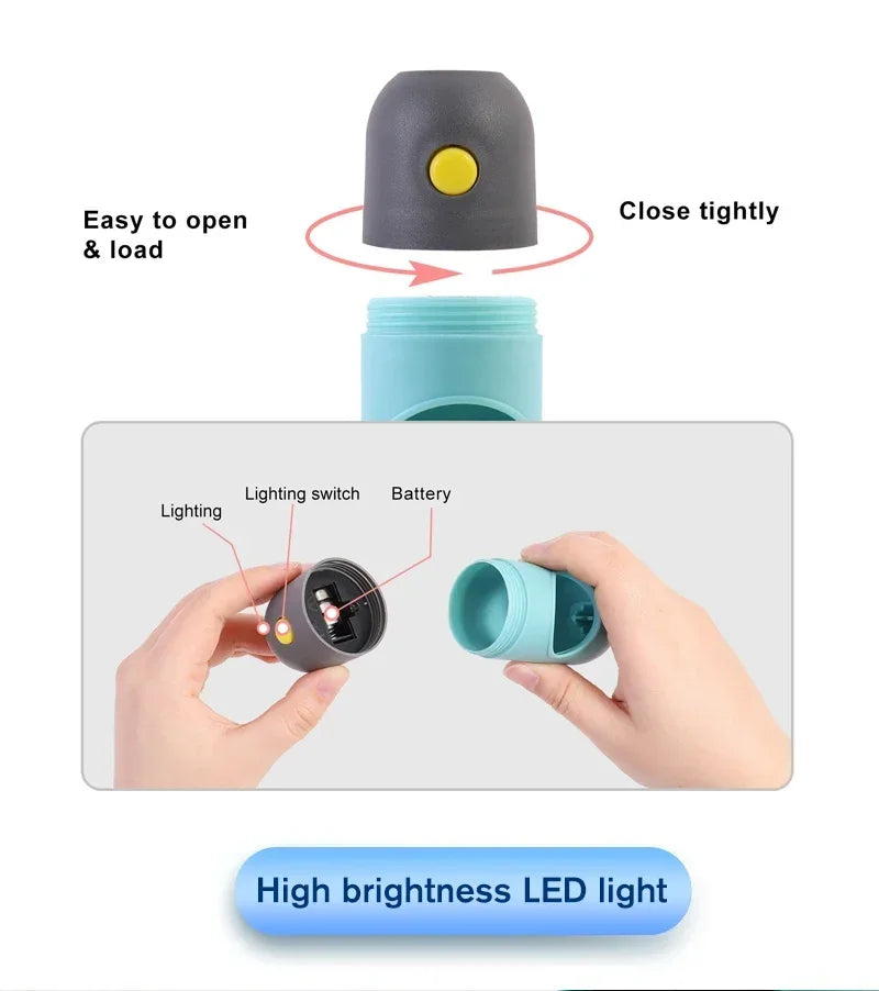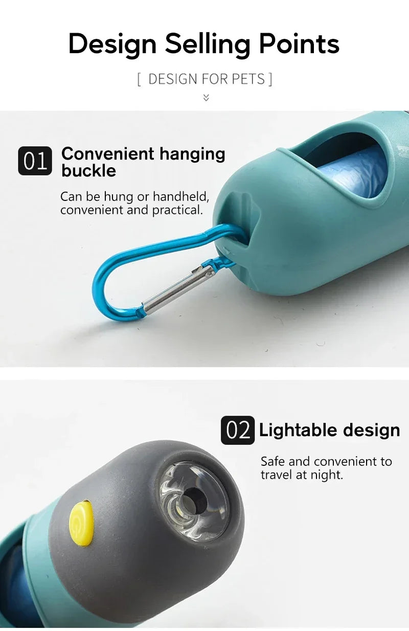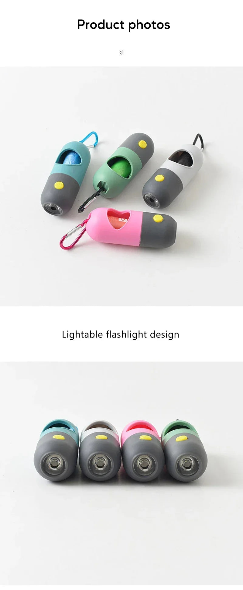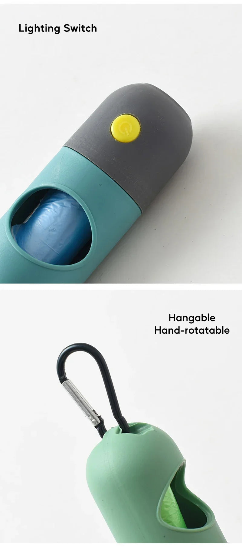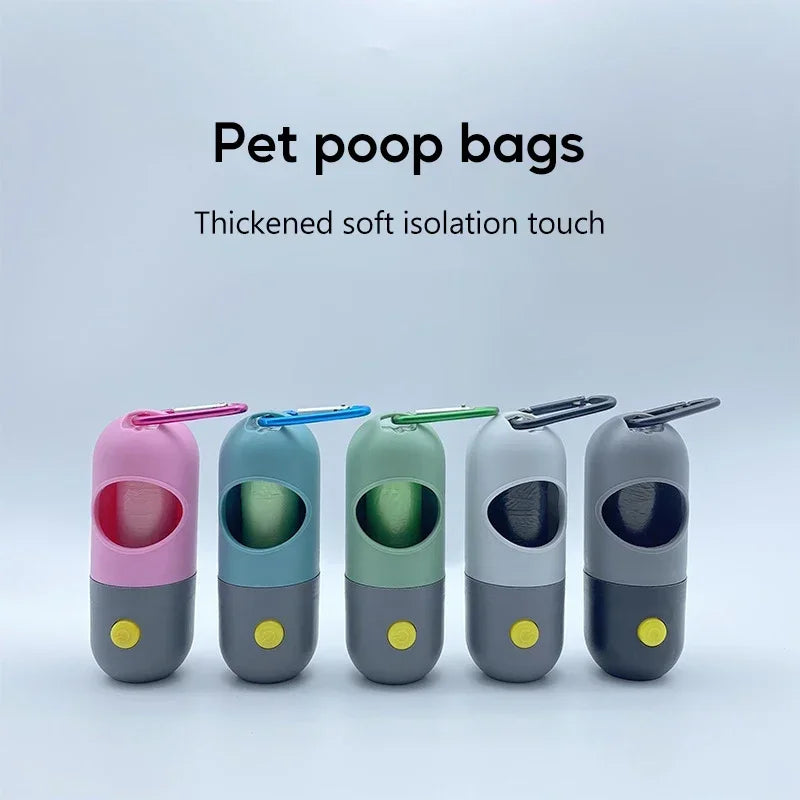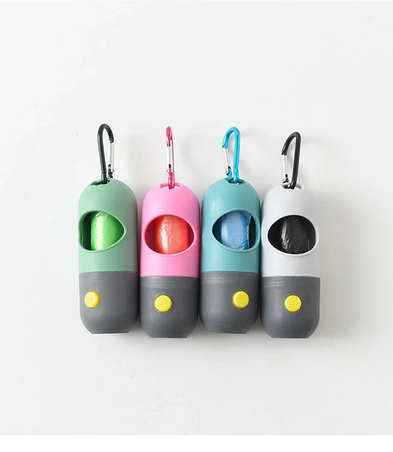 LED Light Dog Poop Bag Dispenser + Degradable Waste Bags
