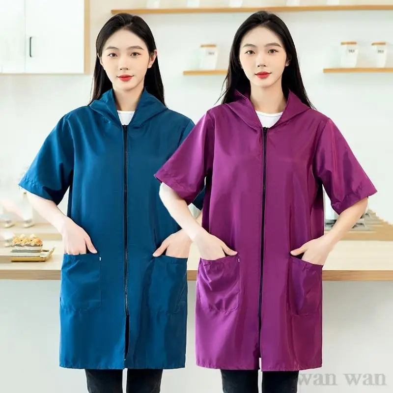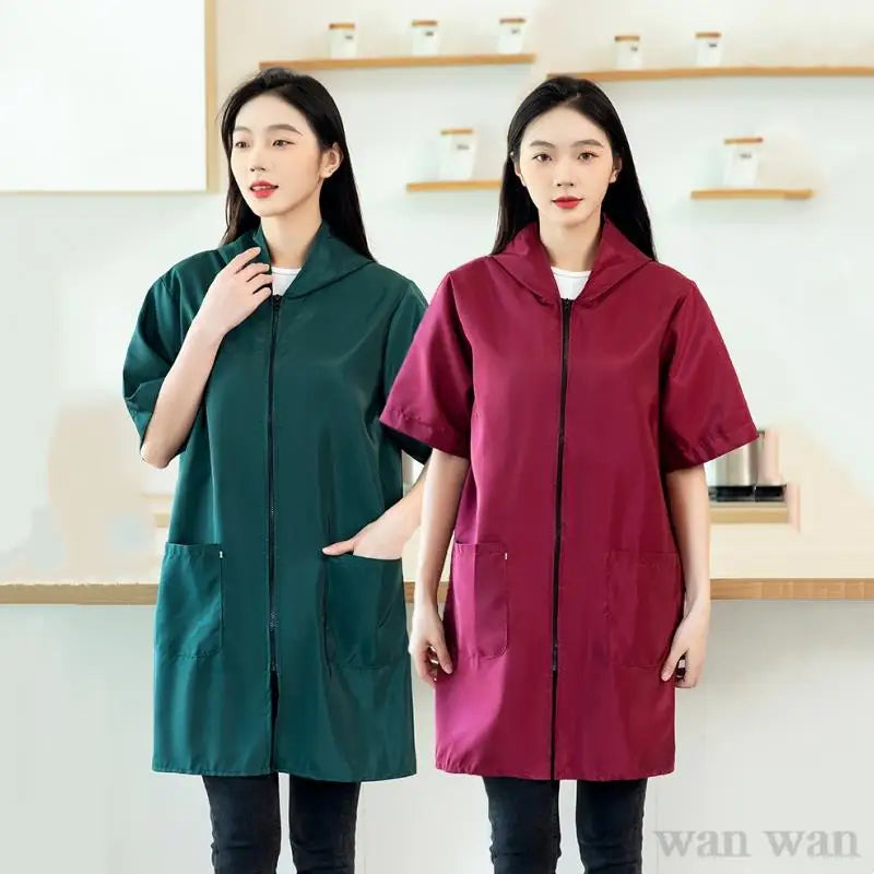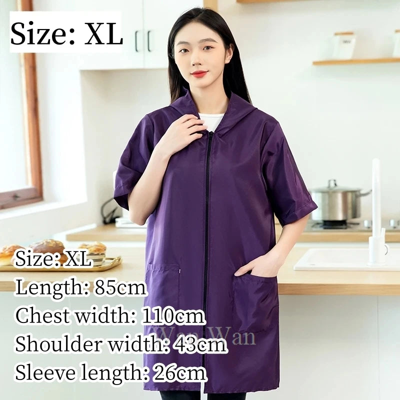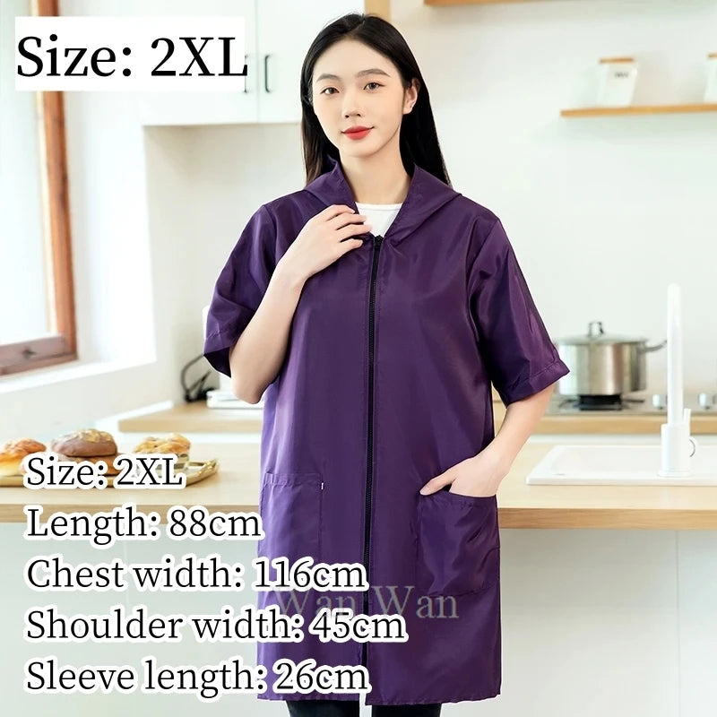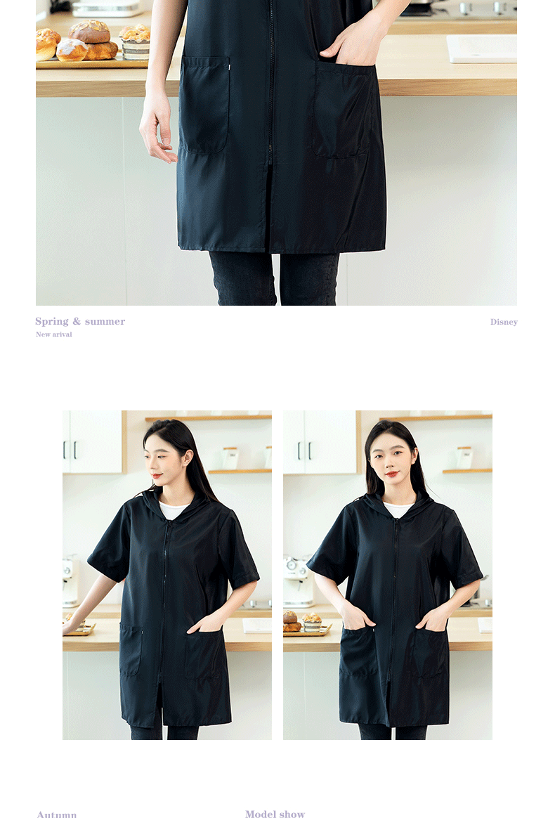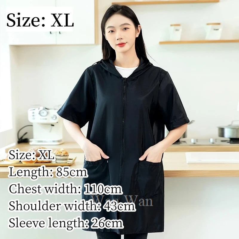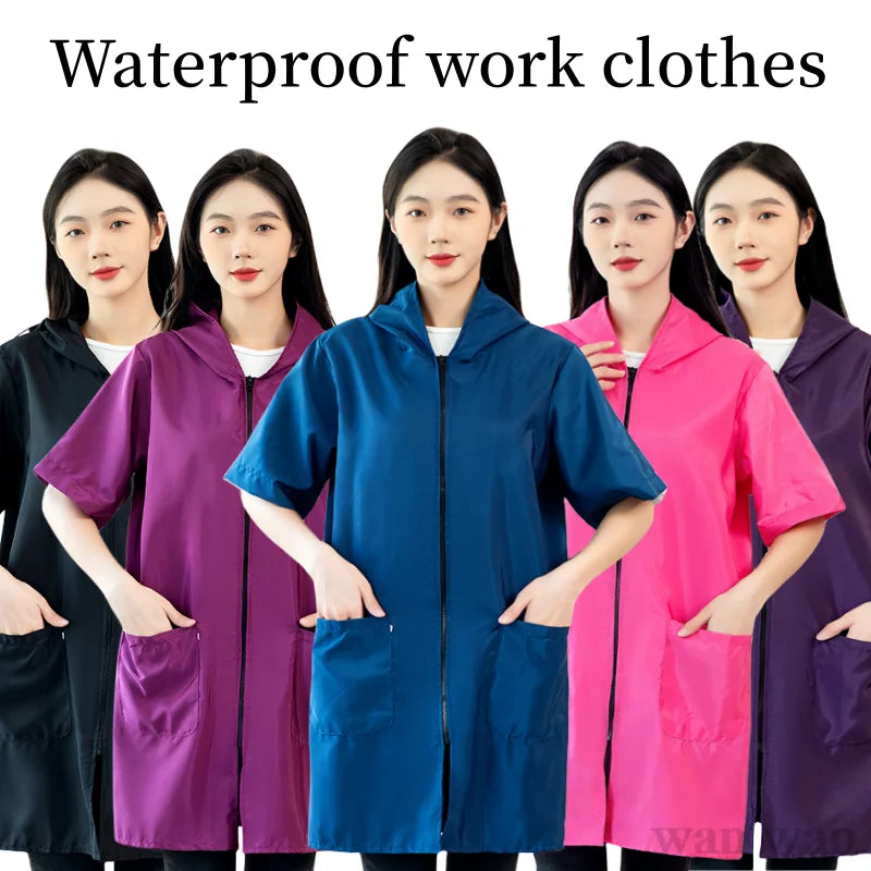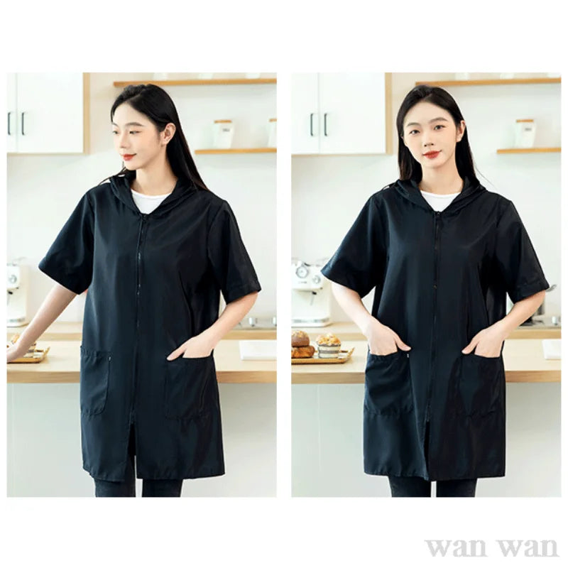 Waterproof Pet Groomer Work Clothes – Black Short Sleeve Dog Grooming Uniform | Grooming Gown Apron for Salon & Barber Shop – Y1111