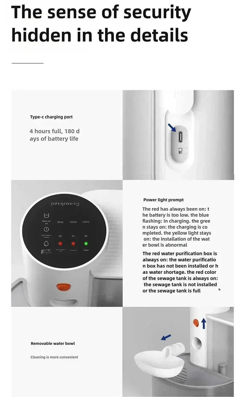 Battery capacity: 2000mAh Dispenser cat water fountain