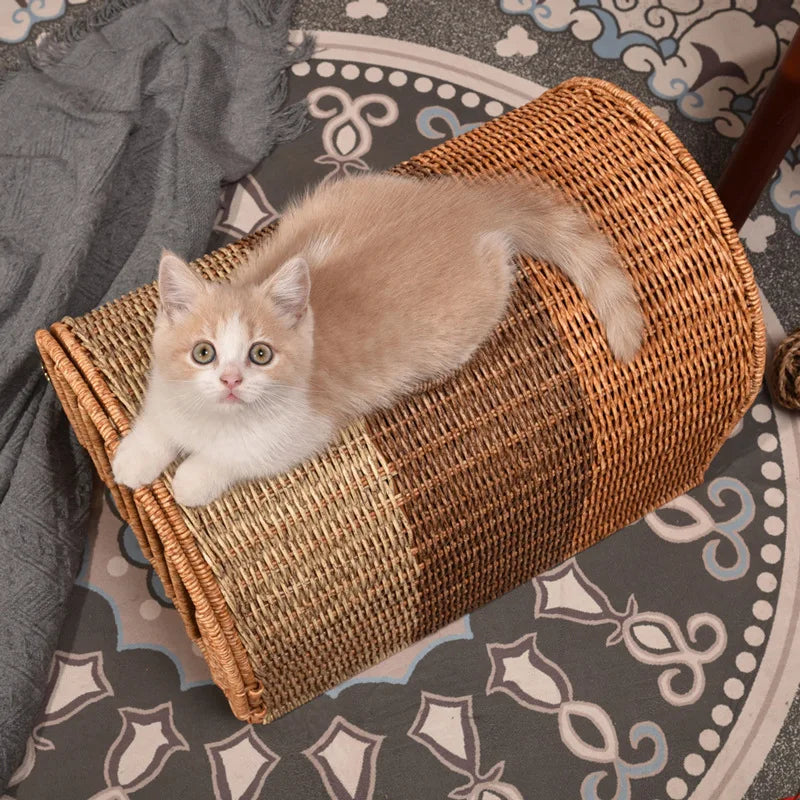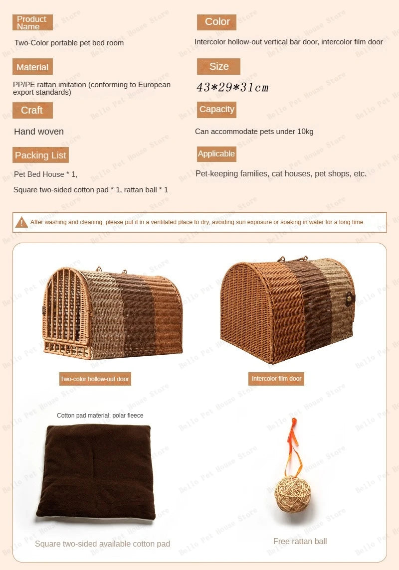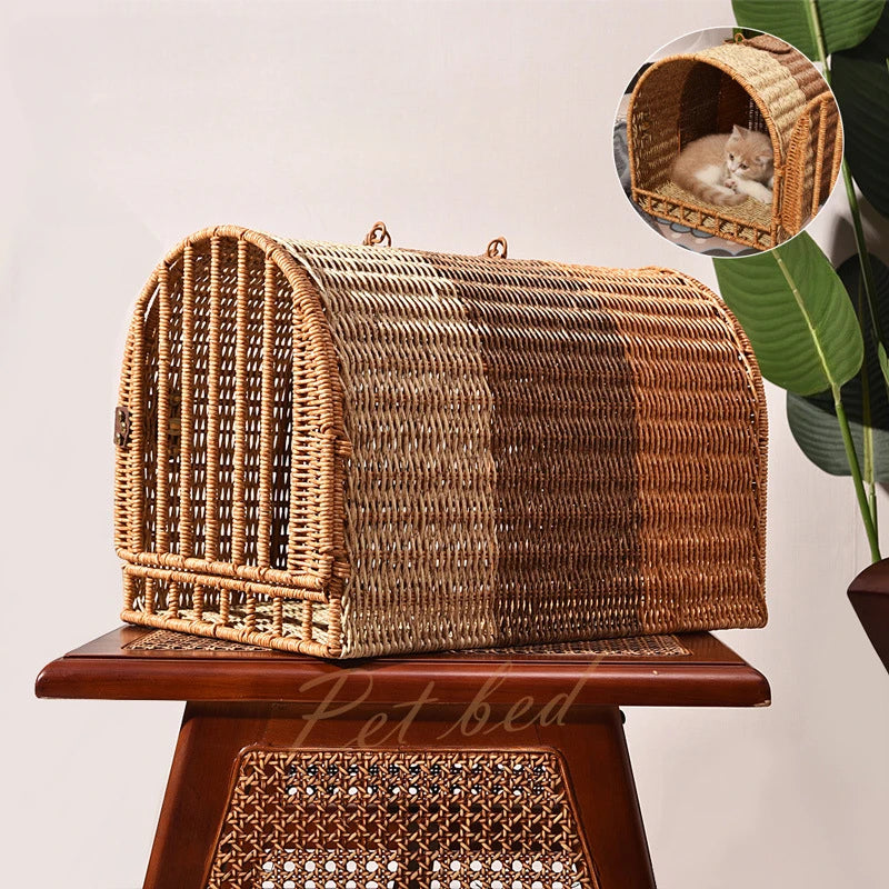 Rattan Cat Cage NZ | Portable Cat Carrier, Nest & Basket – Vehicle Mounted Travel Cat House & Tote Bag for Cats – Durable & Stylish