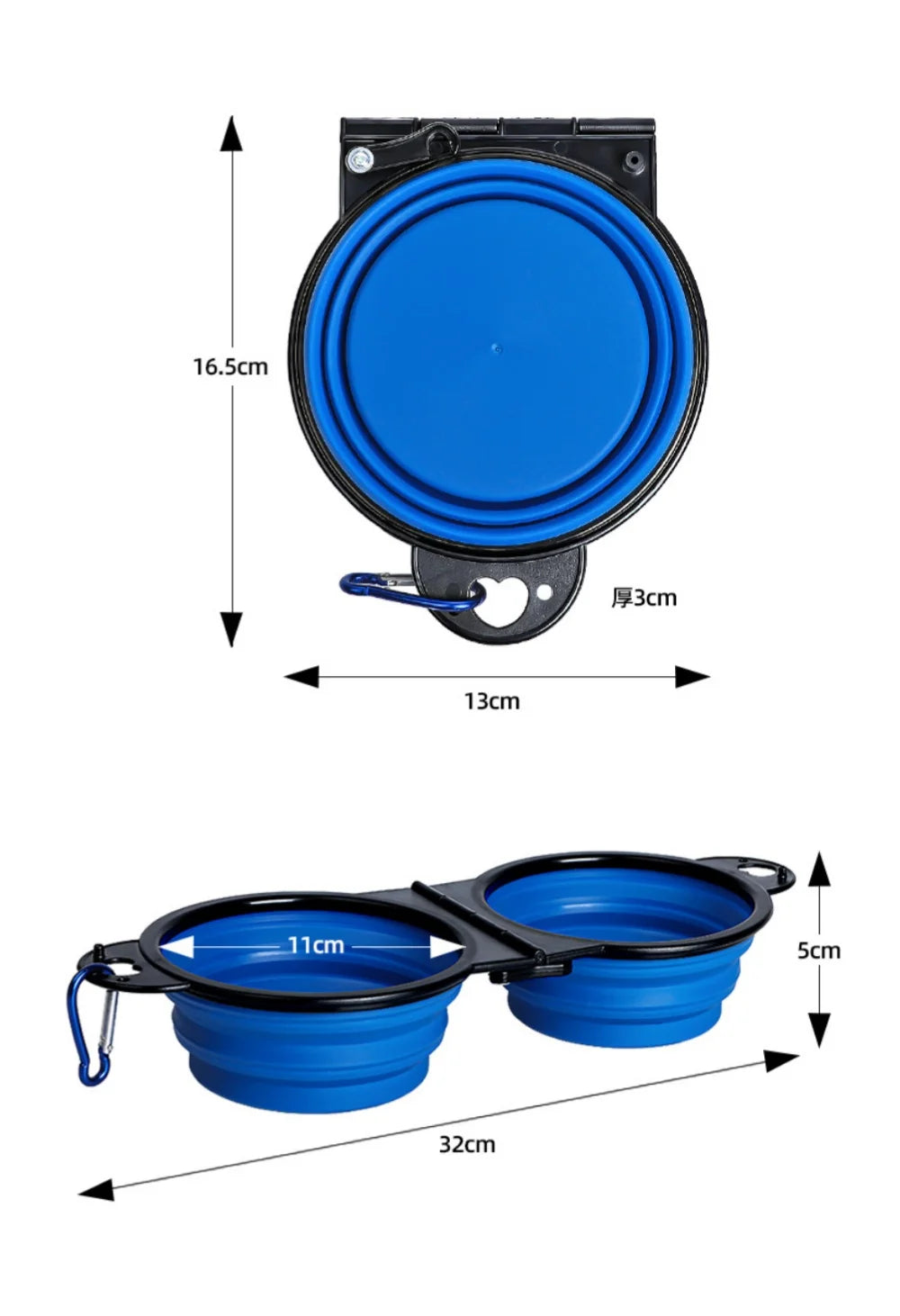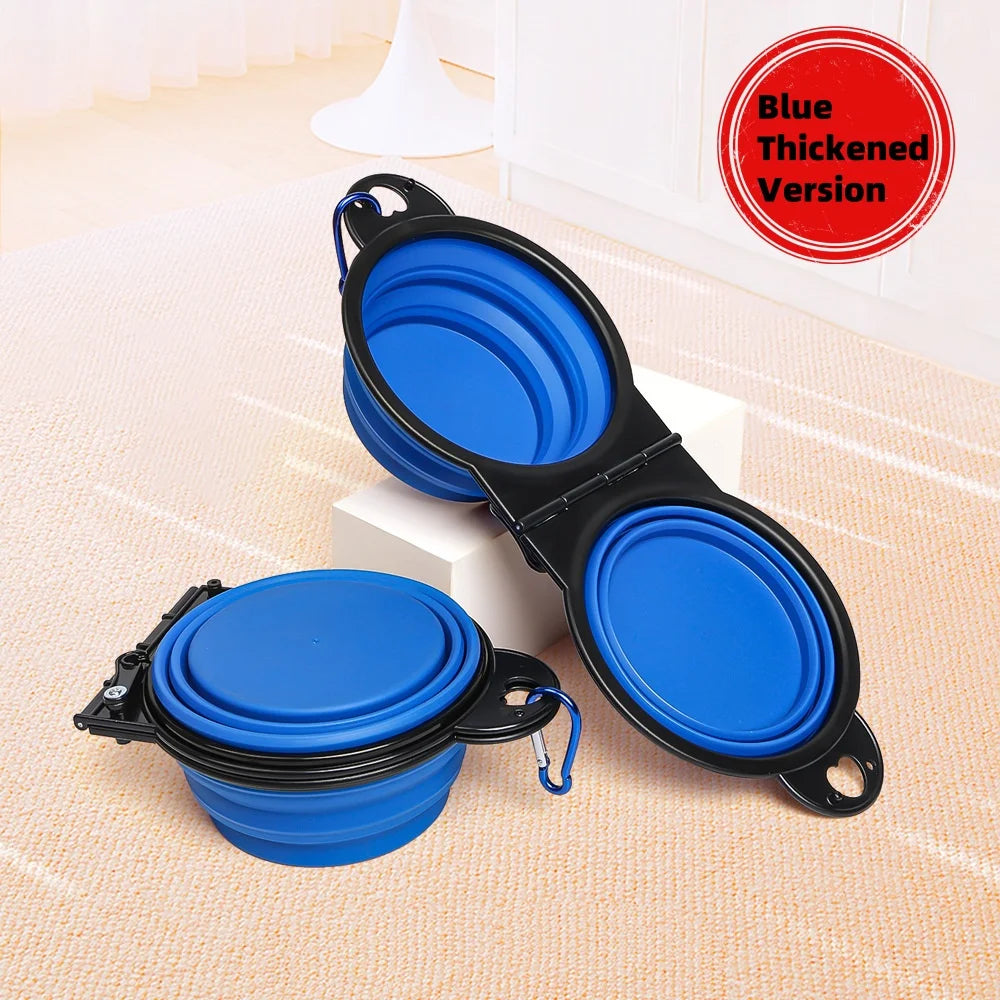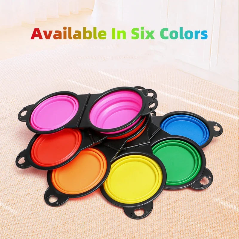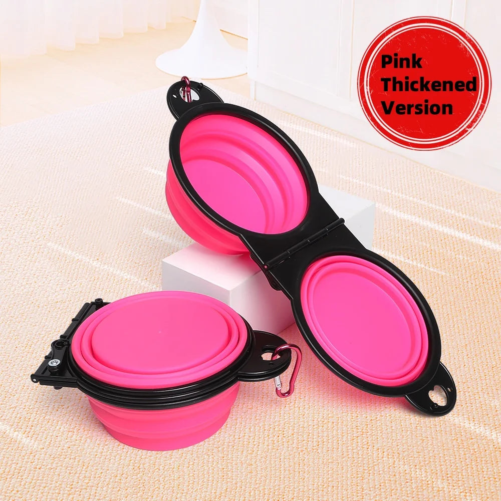 2-in-1 Foldable Double Dog & Cat Feeding Bowl – Portable TPE