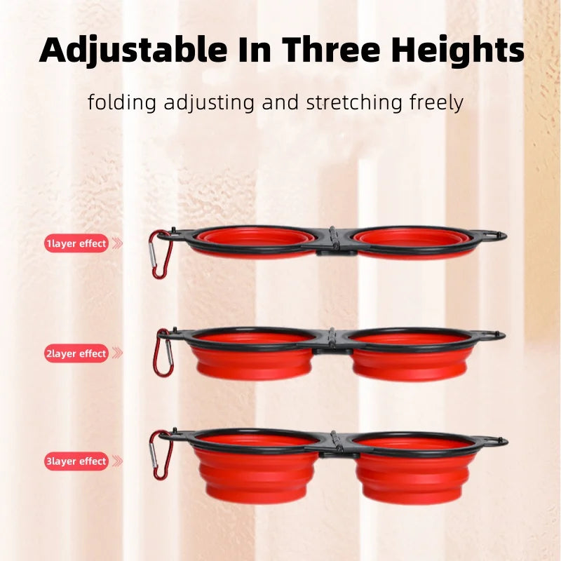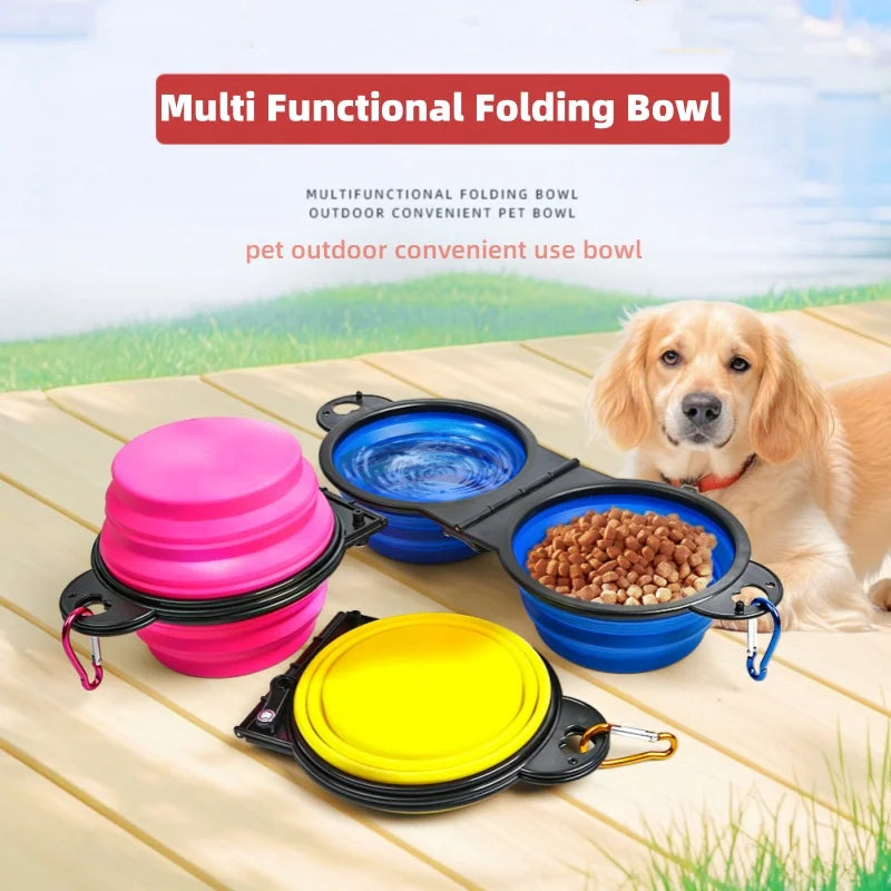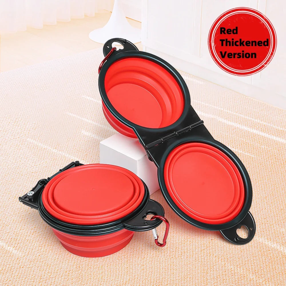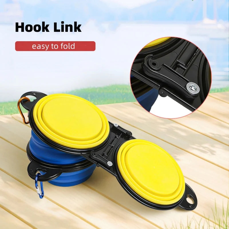 2-in-1 Foldable Double Dog & Cat Feeding Bowl – Portable TPE